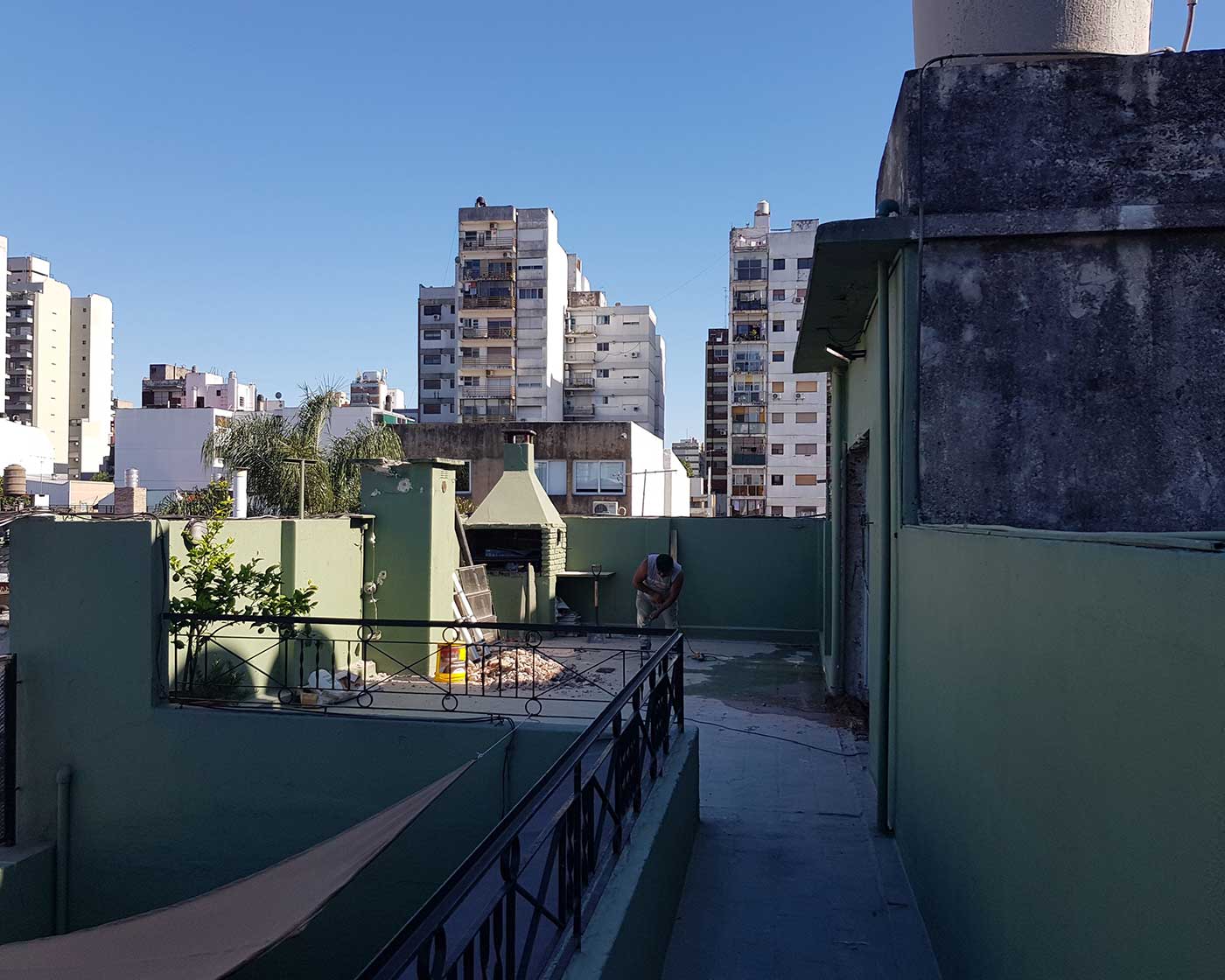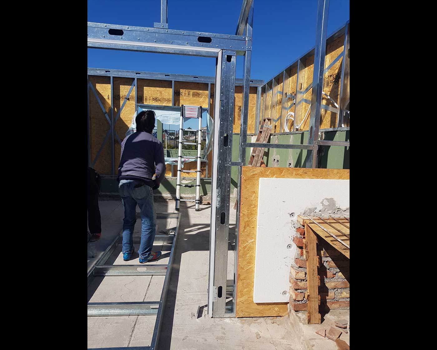 En la obra de Cochabamba, se enfrentó la necesidad de crear un espacio de quincho en la terraza, y tras un exhaustivo análisis estructural de la vivienda, se decidió optar por una construcción puramente de Steel Frame, es decir, una construcción en seco.