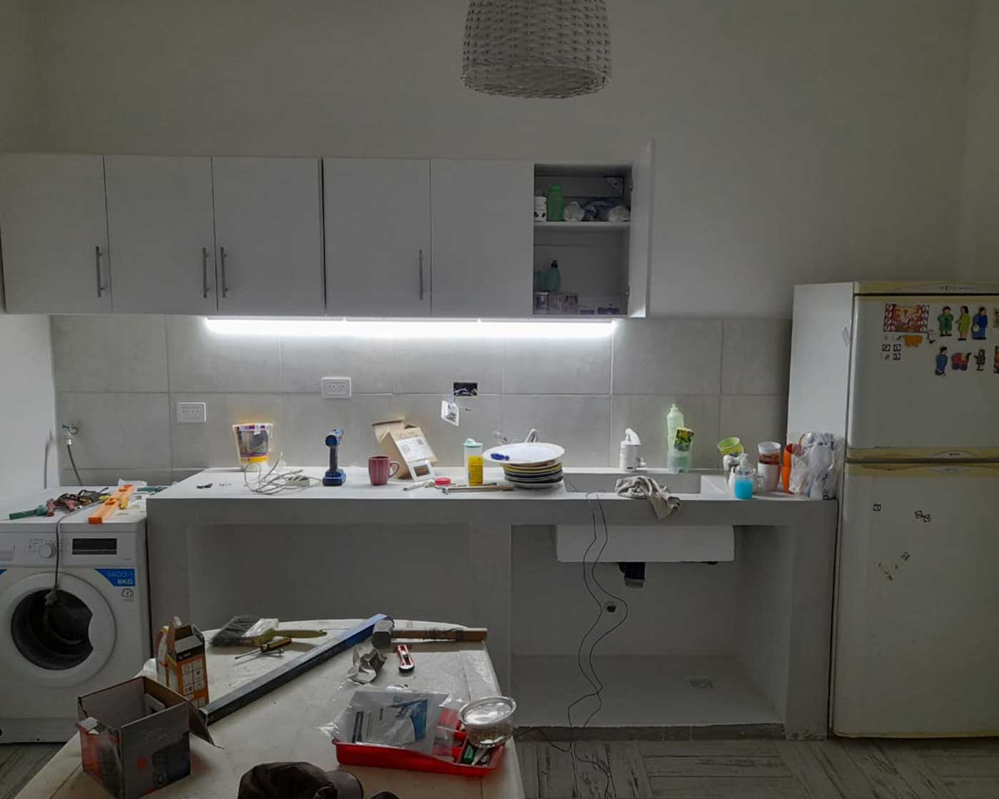 Se llevaron a cabo revestimientos de muros, solados, pintura y todos los trabajos de instalaciones necesarios para obtener un resultado arquitectónico favorable y funcional.