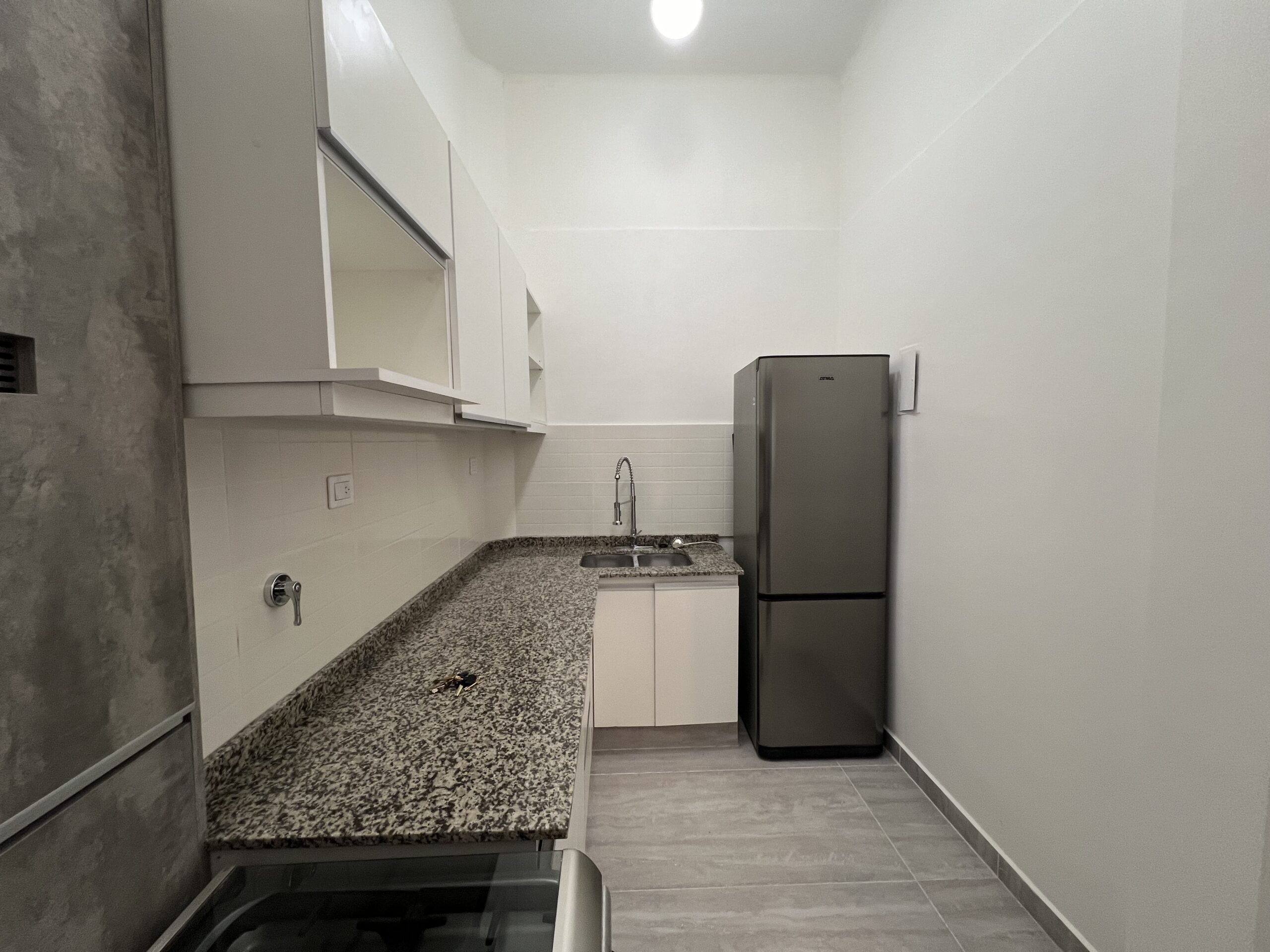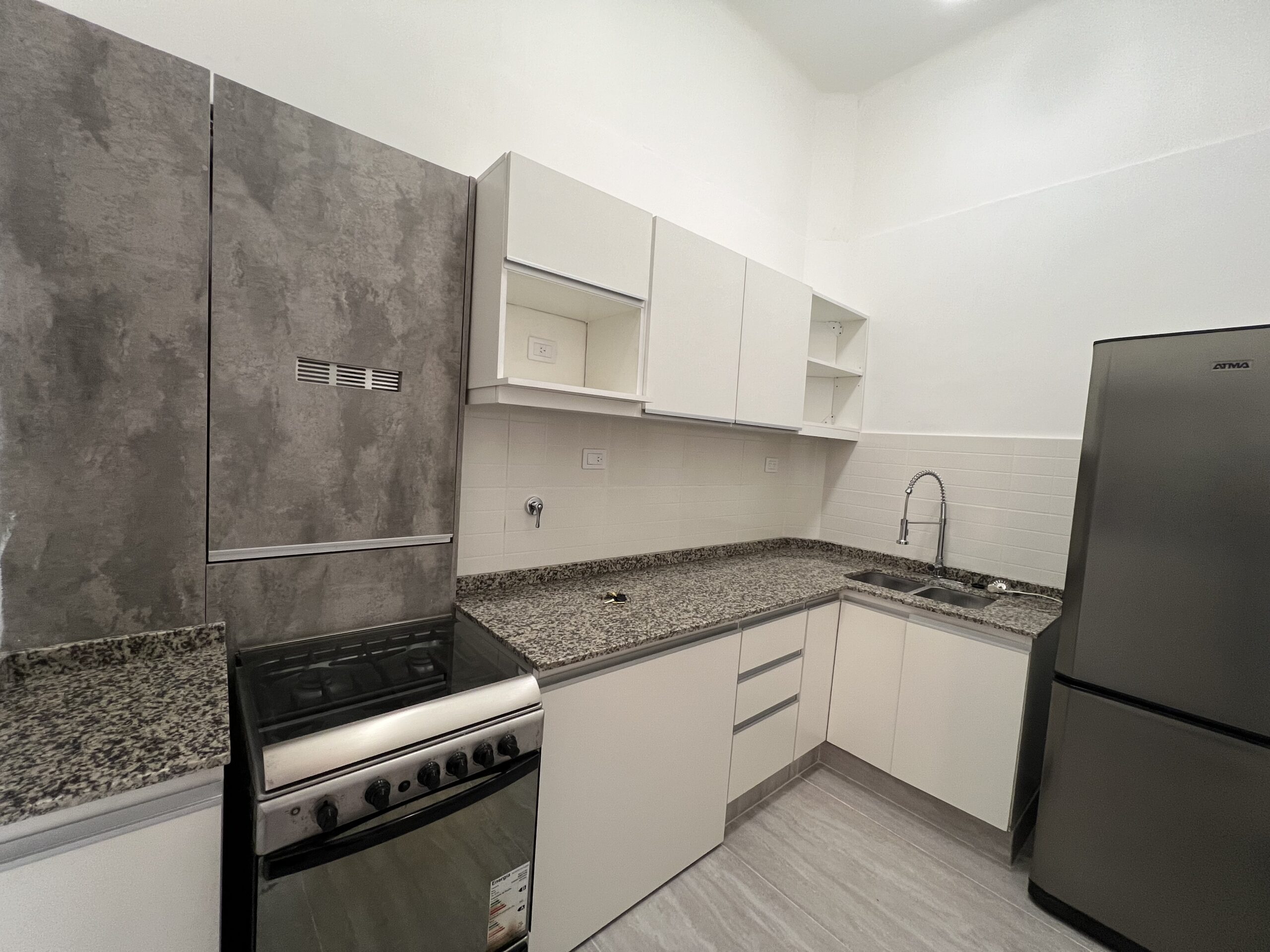 La obra “Av. Independencia 2328” consistió en la reforma integral de la cocina y el baño de una unidad, con un enfoque en la redistribución funcional y la modernización de las instalaciones.