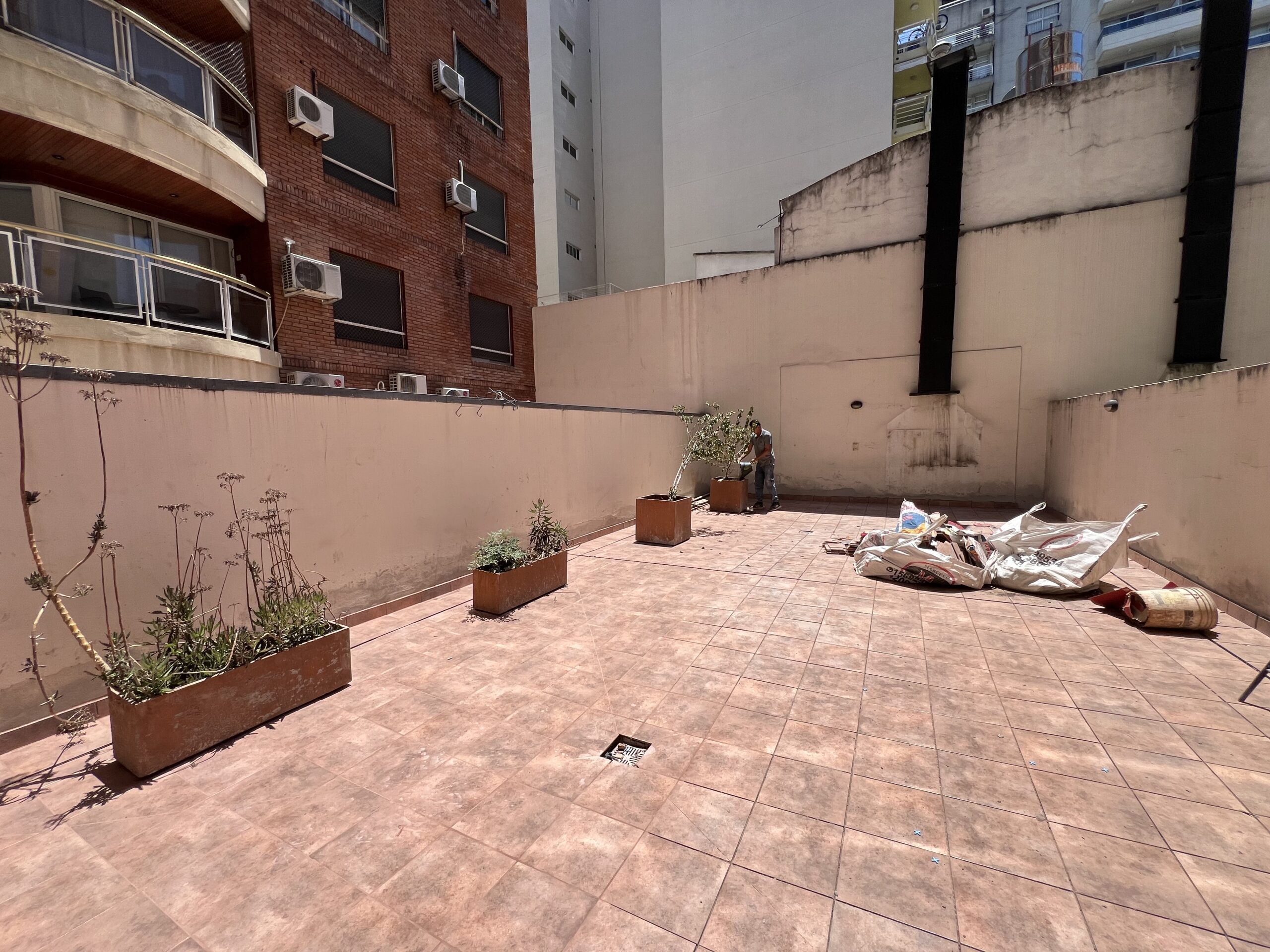 Durante los trabajos, al retirar la superficie asfáltica, se constató su deterioro avanzado, lo que requería una solución estructural en lugar de una simple reparación superficial. Además, se detectaron desprendimientos en la carpeta y cerámicos rotos en distintos sectores, consecuencia de la falta de juntas de dilatación. A esto se sumaba una ejecución deficiente de las babetas, lo que había contribuido al desgaste general del sistema de impermeabilización.