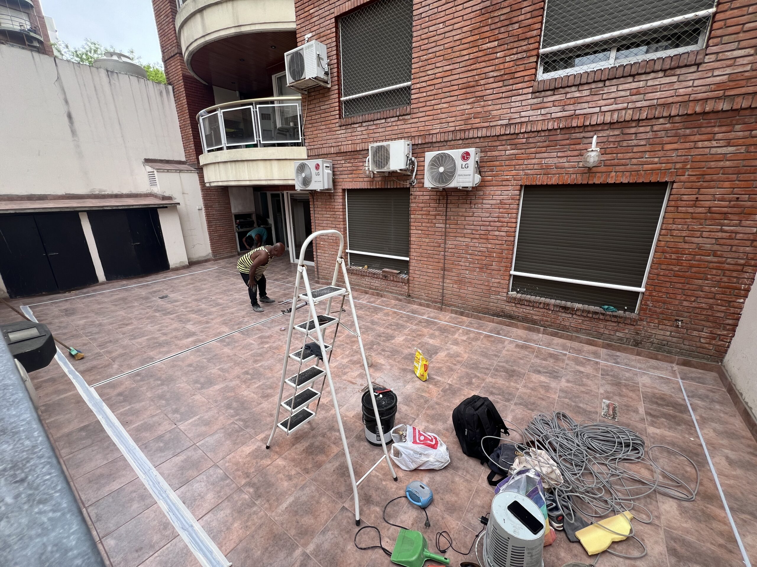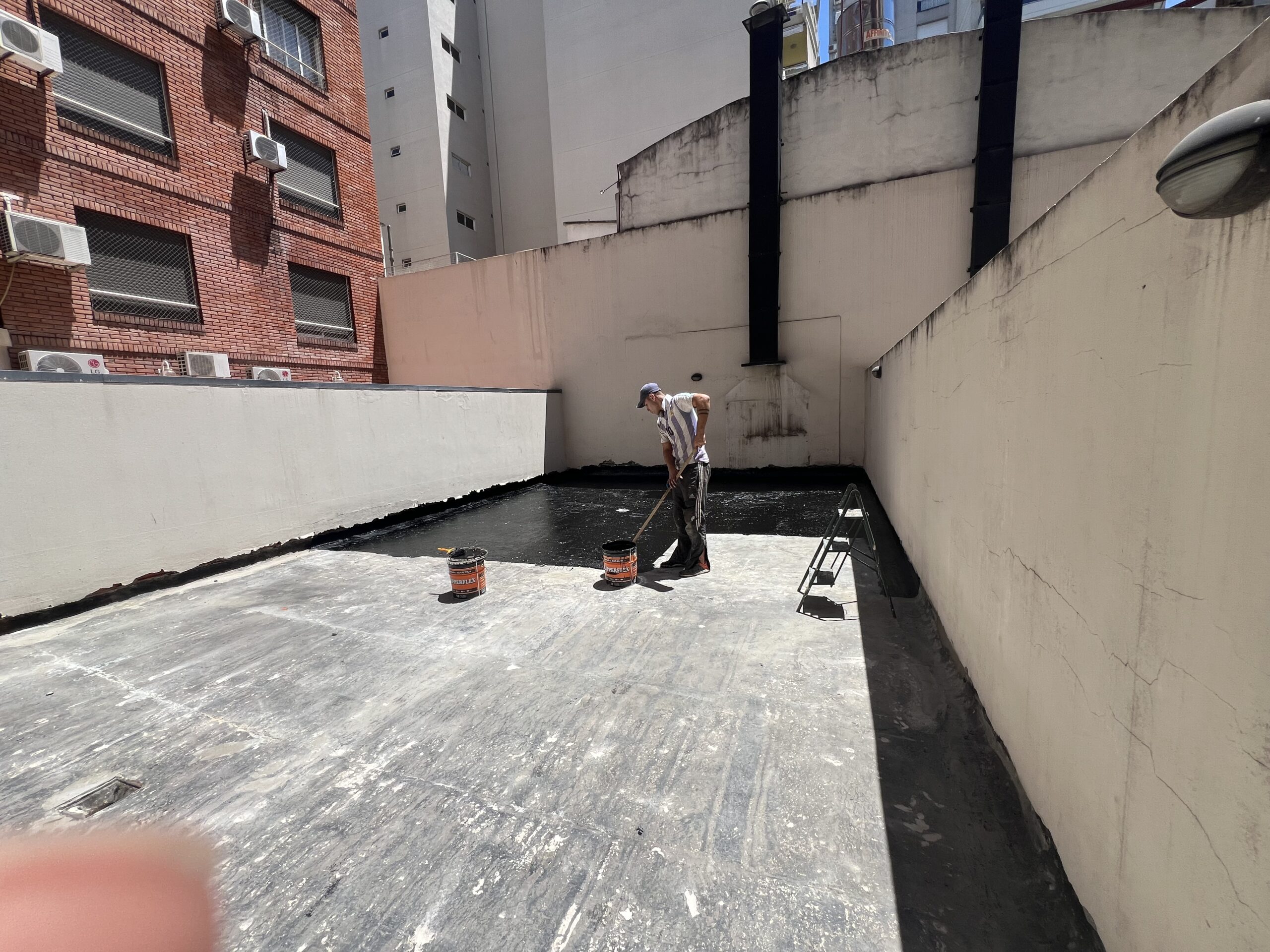 La obra “Tomas Le Breton” fue adjudicada mediante licitación por la administración BOSCATO, una empresa con más de 100 consorcios bajo su gestión. Se llevó a cabo la reforma integral de 250 m², abordando un problema crítico de filtraciones en las cocheras, originadas en las terrazas y con impacto directo en la estructura del edificio.
