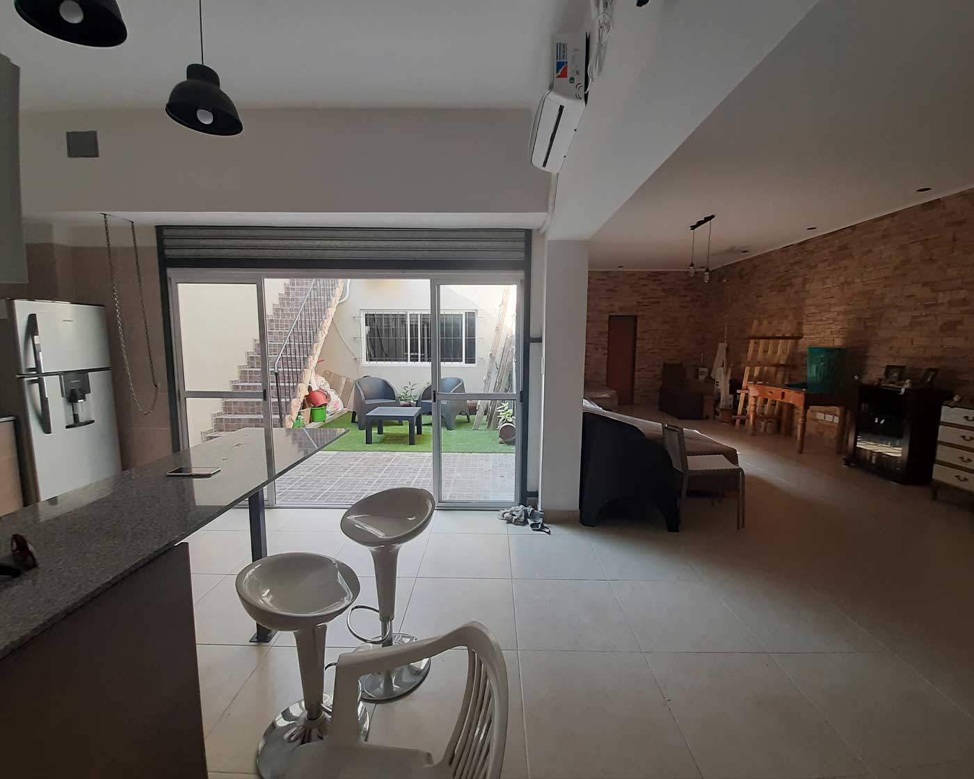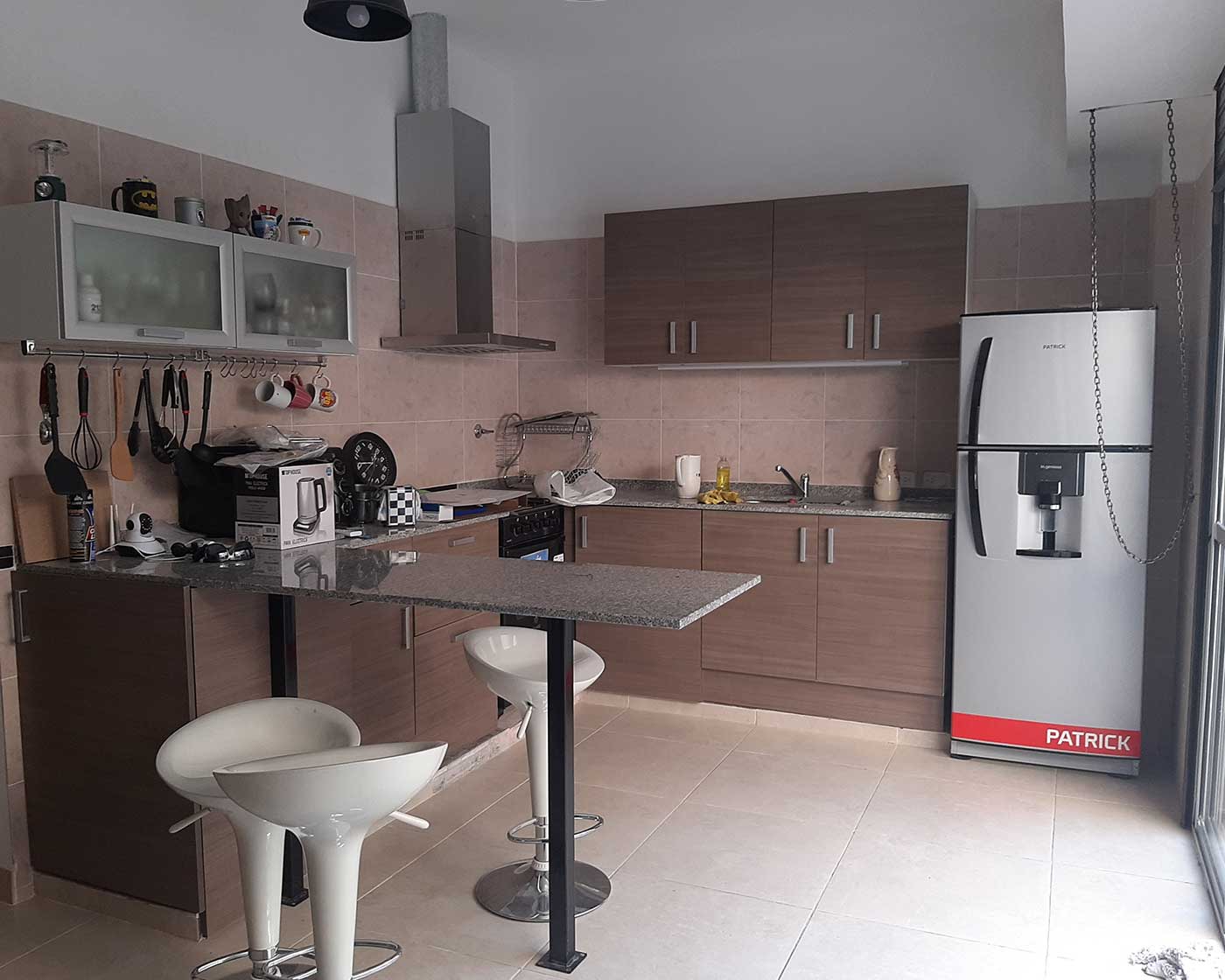 En primer lugar, se eliminó el toldo que obstruía la correcta ventilación e iluminación del patio, permitiendo así una mejor integración de los espacios. Se decidió fortalecer la estructura y seguido a esto elaborar una abertura en el muro de carga que separaba el área principal del ala de dormitorios, creando una conexión clave que integró la nueva cocina con el salón-comedor y el exterior. Los dormitorios fueron reconfigurados al eliminar sus tabiques separadores, convirtiéndose en un amplio salón. El nuevo dormitorio se ubicó en el fondo, donde anteriormente se encontraban la cocina y los baños compartidos, y se aprovechó el espacio superior para crear un quincho.